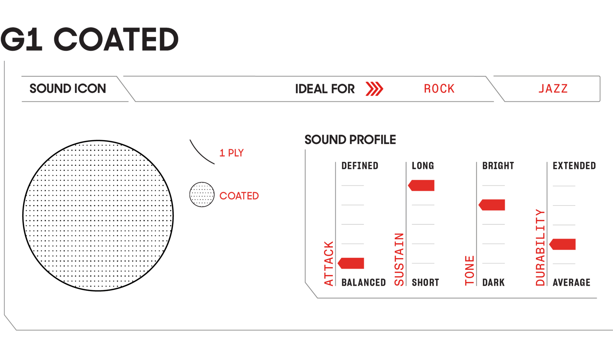 • G1 heads are highly versatile, boasting a very balanced attack, long sustain, bright tone, and average durability.