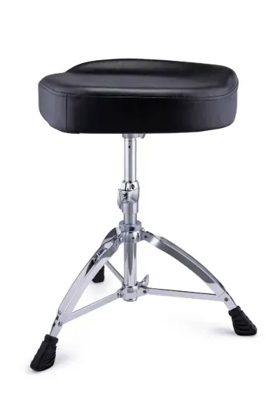 With its 17'' saddle-style cushioned top, the T675A is all about comfort. The sloped leg openings of the biomechanically shaped seat provide a free range of motion while the raised centre and back edge help the player to maintain balance. Like the 570, the wide double-braced tripod base make it stable while the steel height adjustment tube with memory lock make it durable and secure enough for anyone.