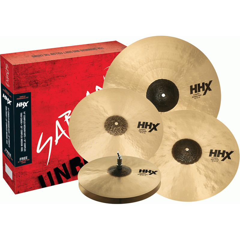 All SABIAN sets are “Sonically Matched” by our Product Specialists in the SABIAN Vault.  Rather than just take each cymbal off the shelf and put in a box, they are first tested individually and then for overall compatibility with the other cymbals in the set.  This ensures you get a ready to go set up, straight out of the box. The HHX Complex Promotional Set consists of 14” Complex Medium Hats, 16” Complex Thin Crash, 20” Complex Medium Ride and a FREE 18″ Complex Thin Crash.